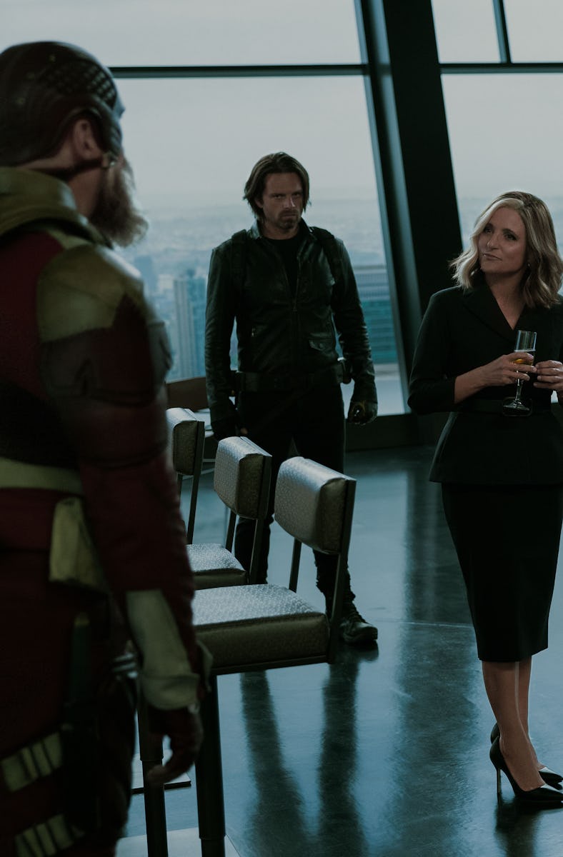 In the post-credits scene, the New Avengers are gathered in the New Avengers Tower, which Valentina has spruced up with their new team name and logo — a team name that is now the subject of a lawsuit from Captain America Sam Wilson (Anthony Mackie). Sam Wilson is suing the New Avengers for their name, having agreed to rebuild the Avengers during the events of Brave New World. Not even Bucky’s friendship with Sam can get him to drop the lawsuit, with Bucky glumly alluding to his last conversation with Sam having gone “badly.” However, Alexei does have a solution to this suit: they change their name to the New Avengerz — a name that he’s even mocked up some sweatshirts for (which none of the team take). The team starts to wonder if, even with the backing of Valentina and the CIA, the New Avengers is long for this world, especially with their greatest asset, Bob, refusing to use his powers for fear that The Void will re-emerge.