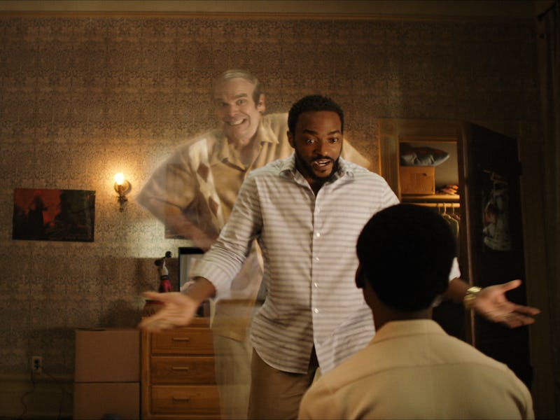 That changes when a trip to the unusually cold attic reveals a ghost: a mute dadbodded-man (David Harbour) with a wicked combover wearing a bowling shirt embroidered with the name “Ernest.” Kevin, like any good Gen-Z protagonist, laughs and pulls out his phone.