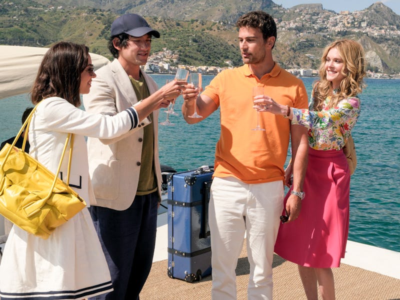 The White Lotus Season 2 boasts a stellar cast that includes two returnees from Season 1 — Jennifer Coolidge and Jon Gries as the now-married guests Tanya and Greg, who are in Sicily on vacation together. Then there’s Michael Imperioli as Dominic Di Grasso, F. Murray Abraham as Bert Di Grasso, and Adam DiMarco as Albie Di Grasso. As for the married couples, Aubrey Plaza and Will Sharpe play Harper and Ethan Spiller, and Meghann Fahey and Theo James play couple Daphne and Cameron Babcock. Haley Lu Richardson is Tanya’s assistant Portia, Sabrina Impacciatore is resort manager Valentina, Simona Tabasco is local call-girl Lucia, and Beatrice Grannò is Mia, Lucia’s shier her best friend. Tom Hollander is set to be Quentin, and Leo Woodall will be a compelling mystery guest.