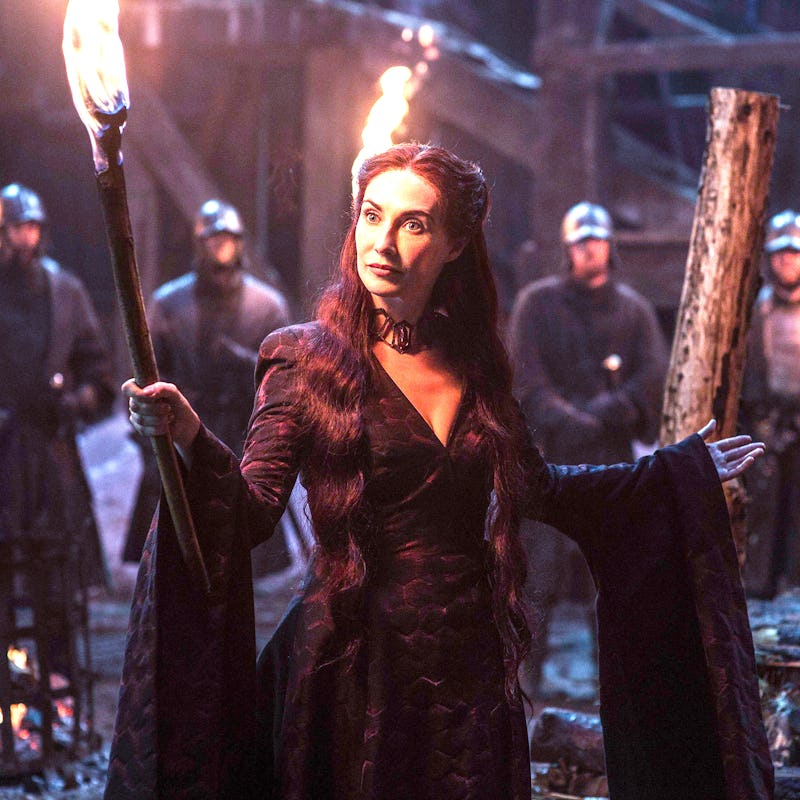 In the Season 3 episode, “The Climb,” Melisandre crosses paths with young Arya for the first time. At this point in the show, Arya, Gendry, and Hot Pie have been taken as ransom by the Brotherhood without Banners, a group of outlaws who protected locals from powerful bullies. Melisandre shows up looking to take Gendry, knowing him to be the bastard son of the late King Robert Baratheon and she needed his blood for a ritual to advance Stannis Baratheon’s cause.