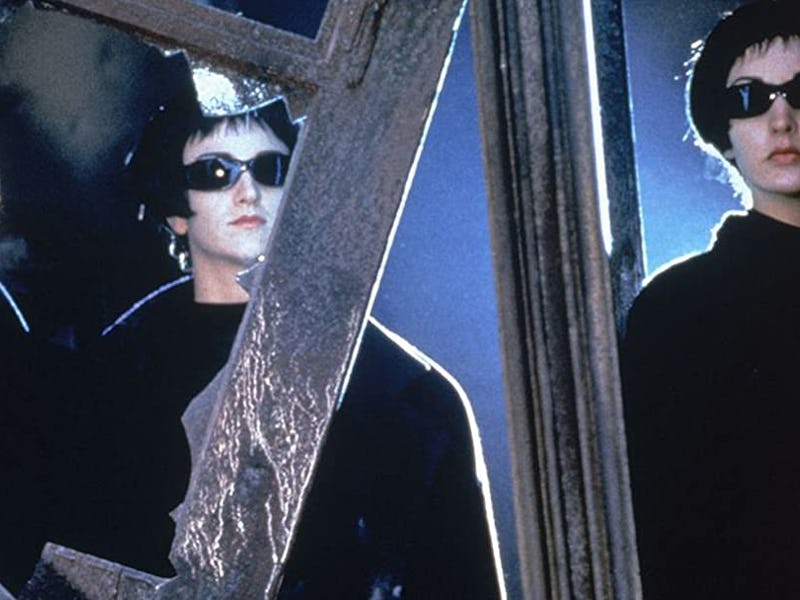 But despite what other robot apocalypse movies like The Terminator would tell you, these robots aren’t part of some hive mind. They break into gangs called the Roms and Droids, for reasons the movie doesn’t explain. The Roms are more advanced, which you can tell because they wear black, have the same haircut, and sport wraparound sunglasses, like low-budget Matrix precursors.