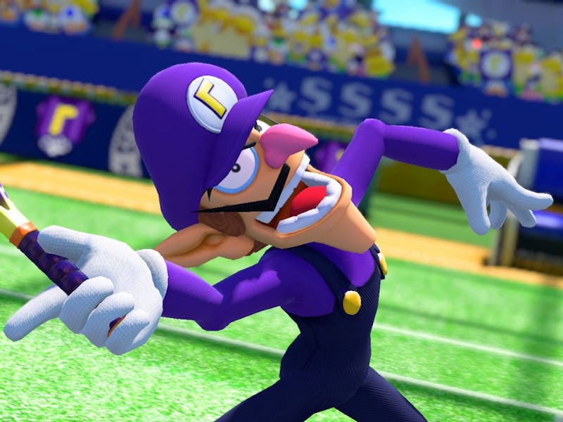 A gigantic Waluigi appears in Mario Tennis Aces.