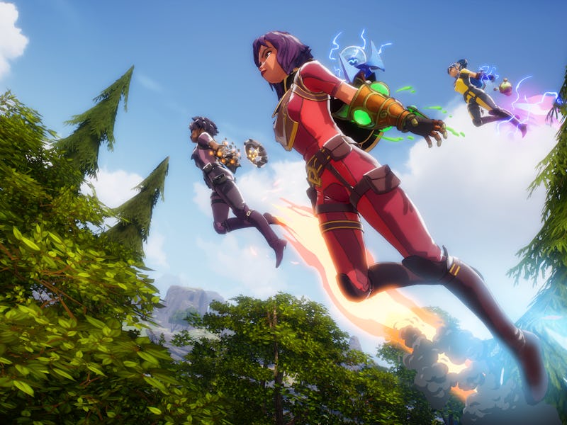Like all battle royales, a storm circle gradually closes in, forcing players to fight each other to the death. But because everyone gets a starting gauntlet element and can pick up a secondary during the match, along with a slew of other items, customizing your ideal build can be quite the task — especially when you can hover around like Iron Man, cast two different attacks from each gauntlet, and combine elemental effects for explosive results.