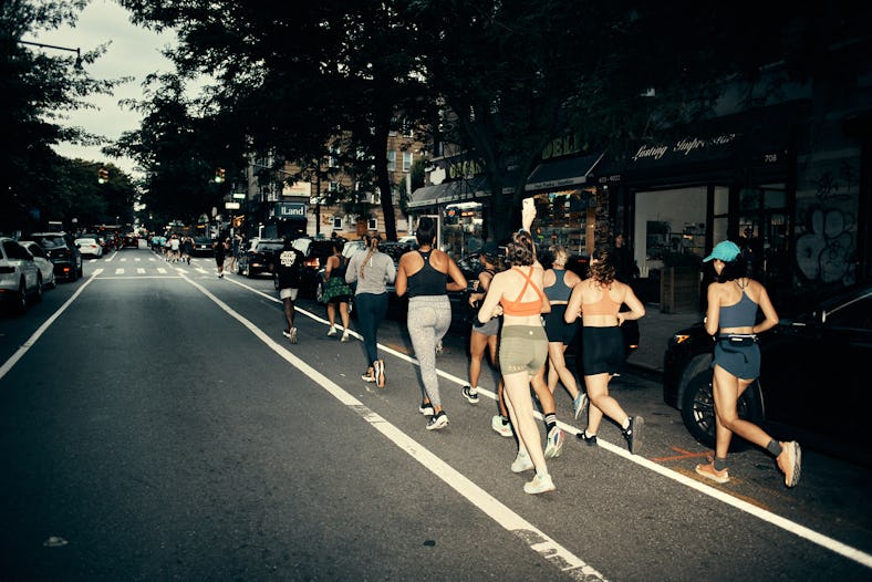 Smoking weed is only a small part of the running journey, Richards says. “With or without cannabis, running is good for mental health – when you commit to something more than yourself, you increase your quality of life.” This attitude transcends into his running group as they transform Prospect Heights into their collective treadmill. Music pulses from the speaker in Richard's hand raised in the air — the leading signal that navigates the runners as they weave through Brooklyn's dimly lit streets into the night.