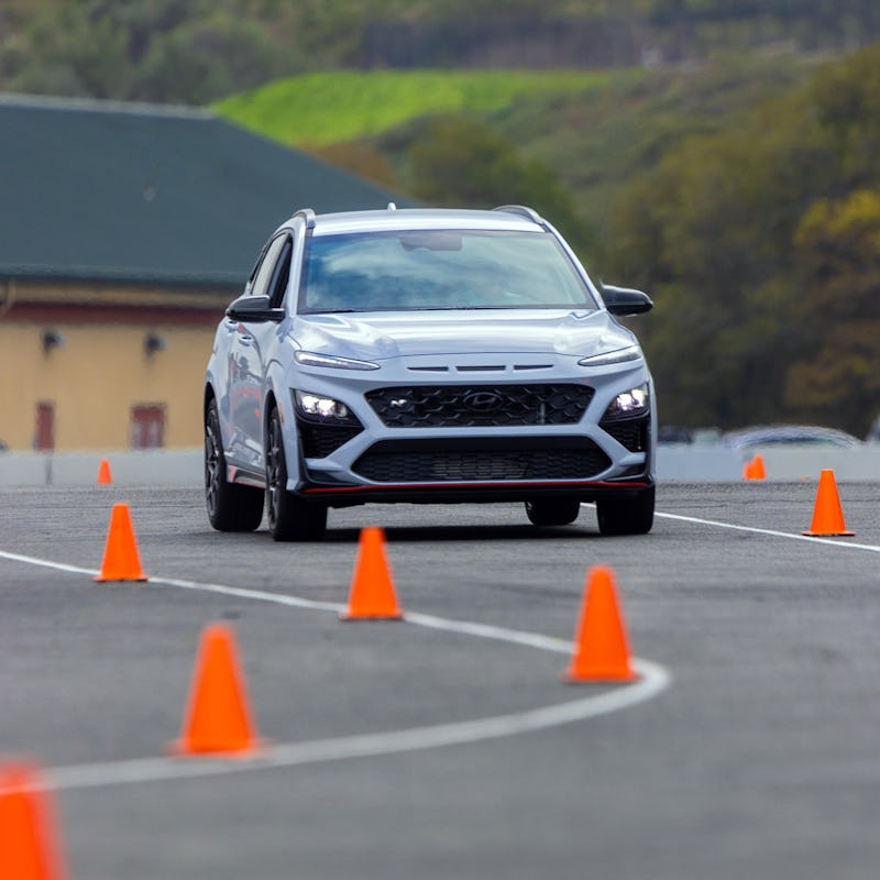 I thought long and hard about how to explain what driving the Kona N on a race track is like. This is the best analogy I can come up with: it’s like riding an angry sheep. It can’t quite put its power down at full throttle, and under heavy braking, to call it squirrely would be kind. But boy, is it an exciting ride.