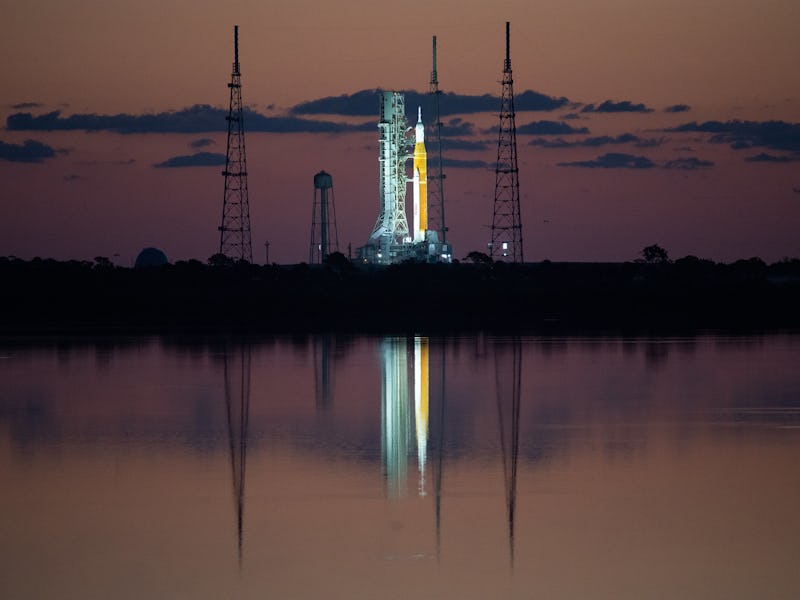 NASA’s Space Launch System (SLS) rocket with the Orion spacecraft at Launch Complex 39B on April 3, 2022.