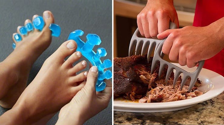 Put your feet up and wrap your toes around these flexible toe stretchers to give your feet some delicious relief from being crammed into shoes. It stretches the small muscles between your toes in order to give the delicate nerves of your feet some space. It feels so good, and the gems look pretty while you are doing it.
