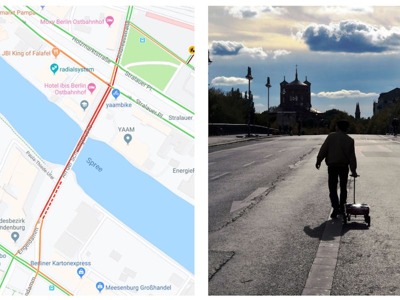 As we reported earlier this week, a performance artist named Simon Weckert recently released a video of him creating a fake traffic jam on Google Maps in Berlin by walking down a street pulling 99 phones with the GPS activated in a wagon. This actually caused some in the area to be directed away from that street on Google Maps to avoid the fake traffic jam. Weckert did this partially to draw attention to how Google Maps directs where we go and the multiple other ways it has become ingrained in our daily lives.