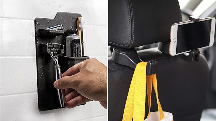 These in-car headrest hooks are super clever. Lock one onto the headrest rod and swing it toward the back seat to give you a place to hang grocery bags or a tote. Flip out the retractable phone clip to give a backseat passenger a hands-free phone mount. Spin it to the front and hang your phone, water bottle, or jacket. Rotate it under the headrest to hide it away. This is a two-pack and each hook holds 22 pounds.