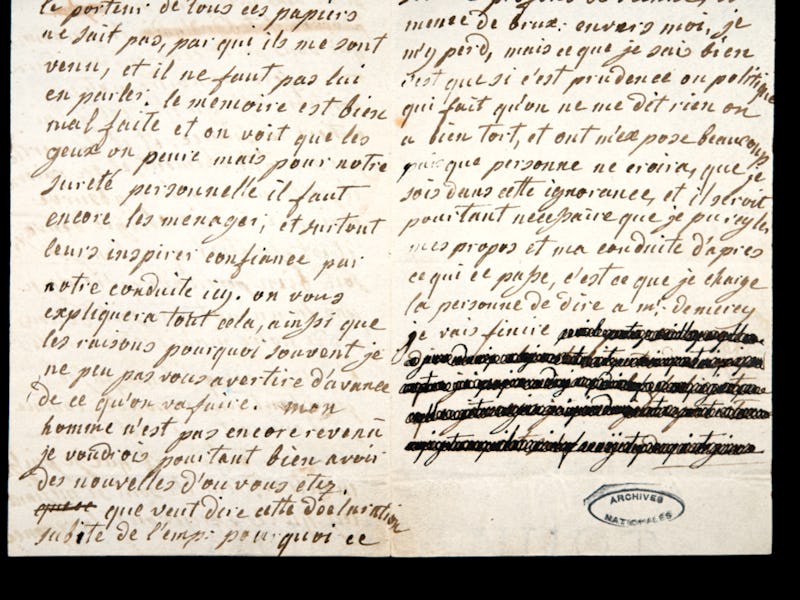 What makes redacted texts trickier, explains Michelin, is that the ink used for redacting can be exactly the same as the original text itself. Such was the case for Marie Antoinette’s letters.