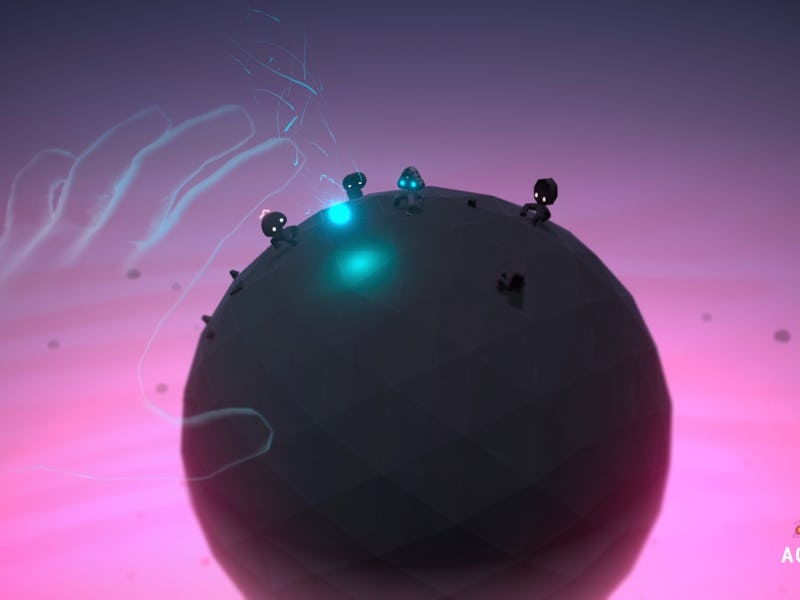 "In the beginning, the world was an algorithm..." a voice croaks as Agence's opening titles dissipate to reveal a barren, purple planet with three-legged "agents" scurrying on its surface. The agents' large, angular heads are emotionless, save for two round, glowing eyes. The viewer has two choices: to passively watch as these creatures work together to not slide off the edge of their planet, or to intervene.