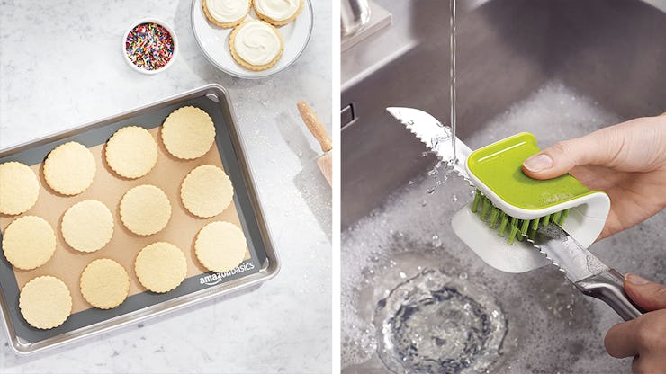 As baking goes from novel to normal, so does cleaning pans on the regular. But if you layer each pan with one of these silicone baking mats before dropping batter or bread onto it, your cleanup will be minimal. These mats can withstand heat up to 480 degrees Fahrenheit and then go right into the dishwasher or a soapy bath. They roll up for storage, too.