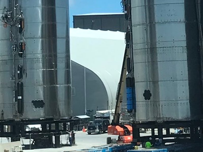 The image demonstrates the impressive size of these early models, even as they lack the features expected in the final design. The final ship is expected to measure 50 meters or 160 feet, with a diameter measuring nine meters or 30 feet. The Super Heavy booster that will help it leave Earth is expected to add a further 70 meters (230 feet), which with its two-meter (six feet) legs means the whole ship will stand 122 meters (400 feet) tall.