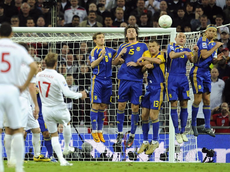 The history behind the wall is interesting, Craig notes. According to several historians she and her team consulted with, the wall used to function as a purely physical barrier designed to block the shot. But this worked best only in the early days of soccer, when the balls were made of heavy leather, unable to lift far off the ground. These days, expert players like Beckham can easily lift a modern, lightweight soccer ball over or even around the wall. This ability changes the point of the wall, Craig says.