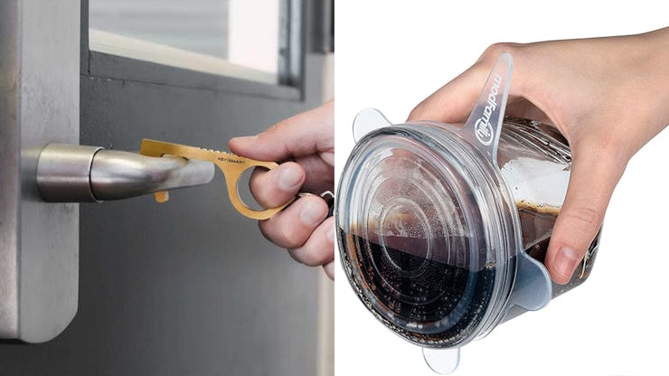 Attach one of these tools to the included retractable carabiner and hook it to your belt loop. Now, when you go out into the world, you won't have to touch anything with your own fingers. It hooks around door handles. It hits buttons. And it pulls levers. This helps keep your hands germ-free. It will also go on your key chain. People love it because it's just the right shape and size.