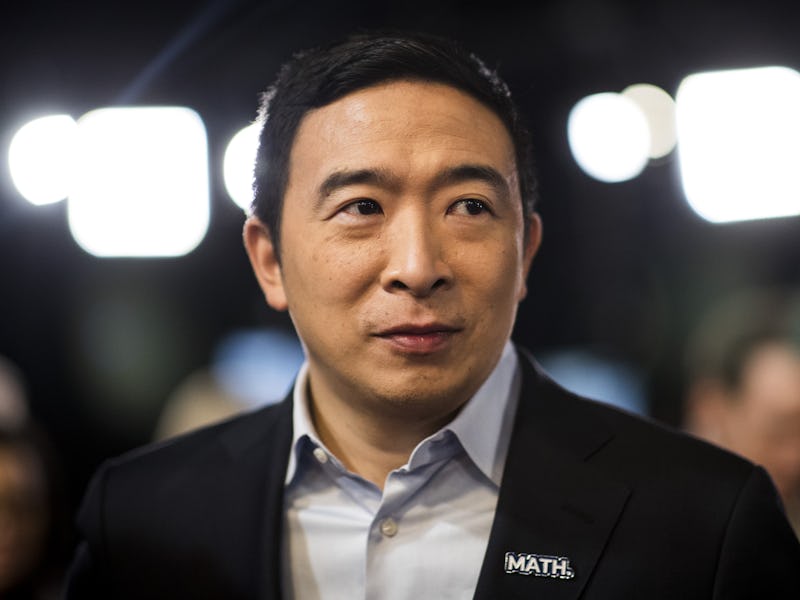 The tech entrepreneur, who had never run for public office in his life, left an impressive mark on the race. The long-shot candidate filed to run in November 2017. In April 2018, the same month his book The War on Normal People hit shelves, Yang told Inverse that he was calling for a $1,000-per-month Freedom Dividend for every adult over the age of 18. Yang's call for a basic income was aimed at American workers, many of who had lost their jobs as workplaces increasingly employed A.I., robots, and automation to replace humans.