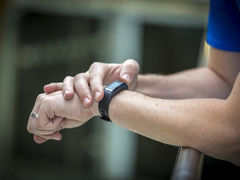 Why We Chose It When you’re wearing the Garmin vivosmart HR, the display is always on, so you can immediately see your stats for the day. The tracker monitors steps, distance, calories burned, and heart rate. It also gives you credit for climbing stairs and taking part in intense activities, so you can monitor your progress against goals you set. The Garmin automatically syncs with your phone to download your data, then you can use the app or website interface to interpret your information.