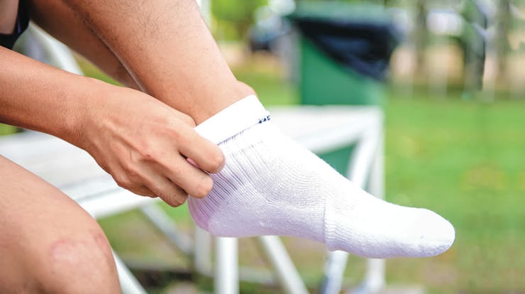 While cotton socks are super breathable, they're not going to do the best job of keeping you cool and dry, given their hydrophilic nature. For moisture-wicking, opt instead for a performance synthetic or natural bamboo. Bamboo has the added benefit of being naturally temperature-regulating.