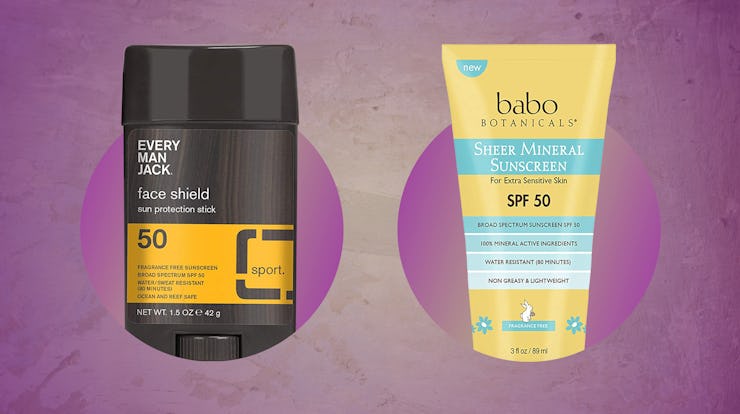 Studies have shown that titanium dioxide, commonly found in sunscreens, protects skin from ultraviolet damage without harming human cells — but there’s a variety of ingredients in sunblock, and it can be tough to figure out which ones are right for you. According to the American Academy of Dermatology, the best sunscreens for men (and everyone, really) are SPF 30 or higher and offer broad-spectrum protection against UVA and UVB rays — and ideally, they’re also water-resistant for sweat, rain, and everything else. When shopping for sunblock, you have a choice between chemical or mineral sunscreens in lotion, stick, and spray formulas, including ones that are sensitive skin-friendly.