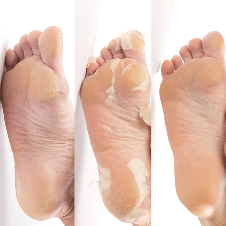 How exactly do these magical foot peel masks work? Just soak your feet in warm water, wear the booties for about an hour to 90 minutes underneath your favorite pair of fuzzy socks, rinse off the serum, and watch over the next 14 days as your old skin peels away. You can continue to soak them daily to help the process, but everyday activity will also do the trick.