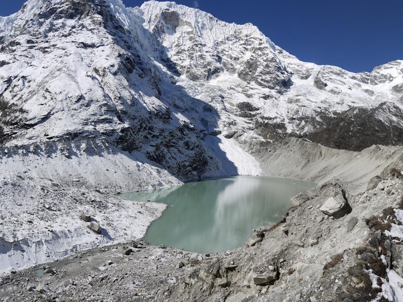 Pictured here: Dig Tsho in the Langmoche valley, Khumbu Himal, Nepal. An avalanche caused flooding from a glacial lake here in 1985. The High Mountain Asia region has the highest risk of glacial lake outburst floods globally.