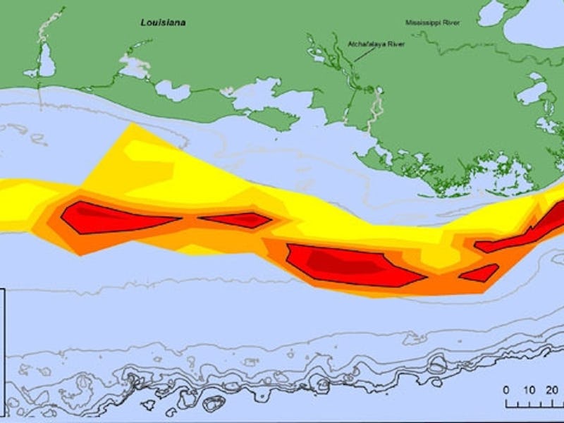 Bigger patterns — This year's dead zone was only slightly larger than the target set by the Hypoxia Task Force, a group that includes federal and state agencies, and the tribes within the Mississippi/Atchafalaya River Basin, which works to reduce and control hypoxia in the Gulf. But the five-year average tells a different story.
