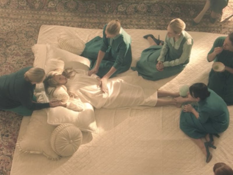 Of all the bizarre events that take place in Hulu’s haunting new adaptation of Margaret Atwood’s novel The Handmaid’s Tale, the fake group birth scene in Episode 2, “Birth Day,” is arguably the strangest. What makes it especially weird is that it resembles a phenomenon that occasionally takes place in real-life maternity wards.