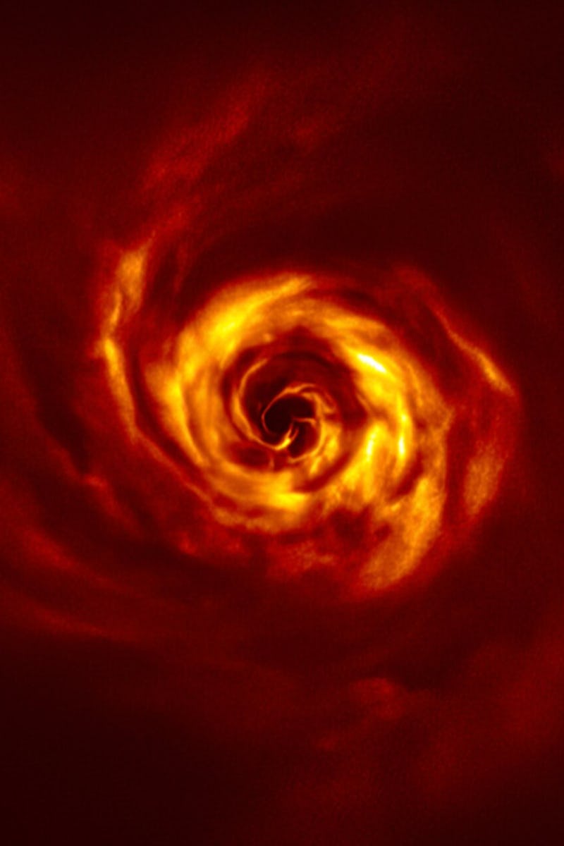 The bright yellow twist seen at the center of the image above is about as far from the star as the planet Neptune is from the Sun.