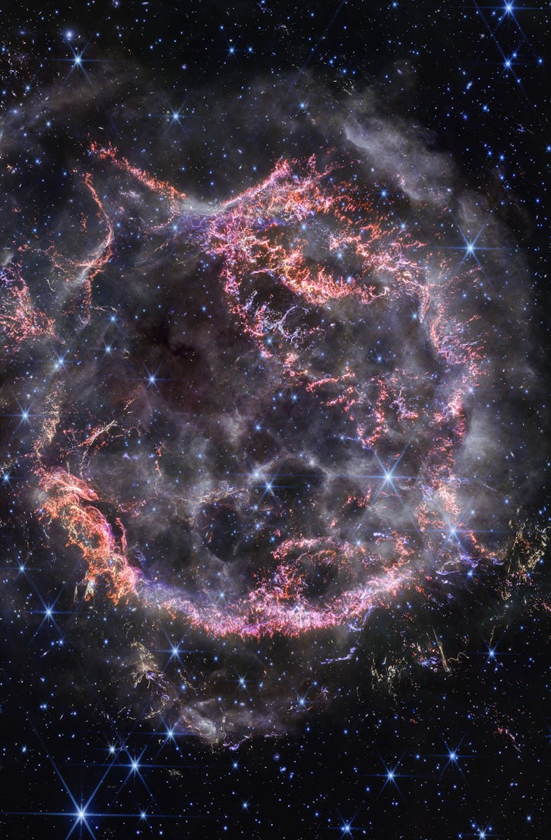 NASA’s James Webb Space Telescope captures the explosive aftermath of supernova remnant Cassiopeia A in all its infrared splendor.