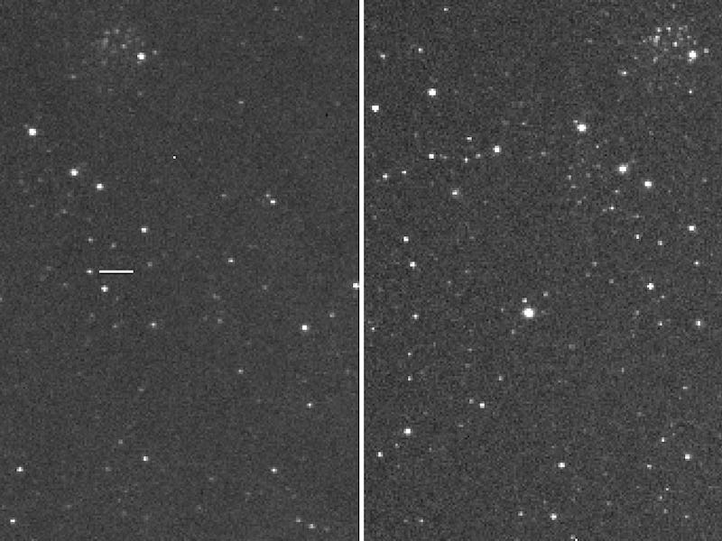 A side by side of the same region of the sky, with the right side showing just four days before the observed nova appeared in the astronomer’s view.