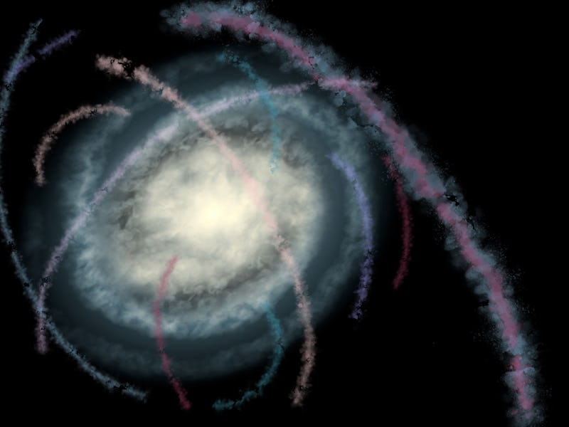This artist’s impression shows the 12 stellar streams as they orbit the Milky Way.