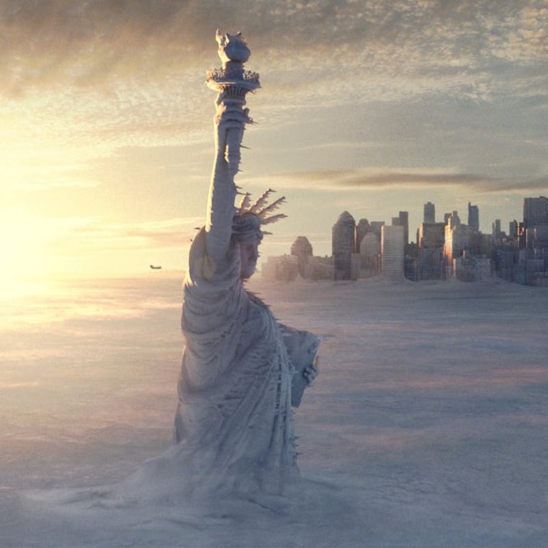 In The Day After Tomorrow, storm surges are appearing along the Eastern seaboard as a result of the shutdown of the ocean circulation system, causing storm surge that engulf the Statue of Liberty — and all of Manhattan.