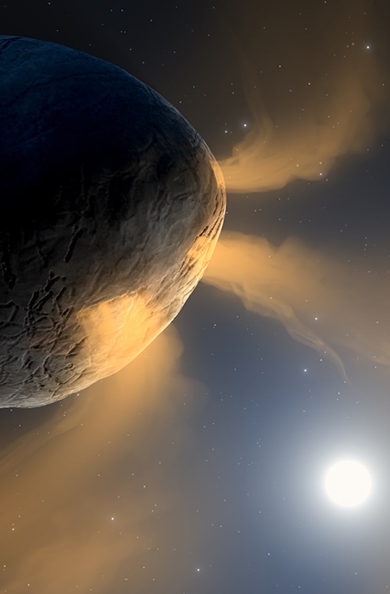 This artist’s illustration shows asteroid Phaethon being heated by the Sun.