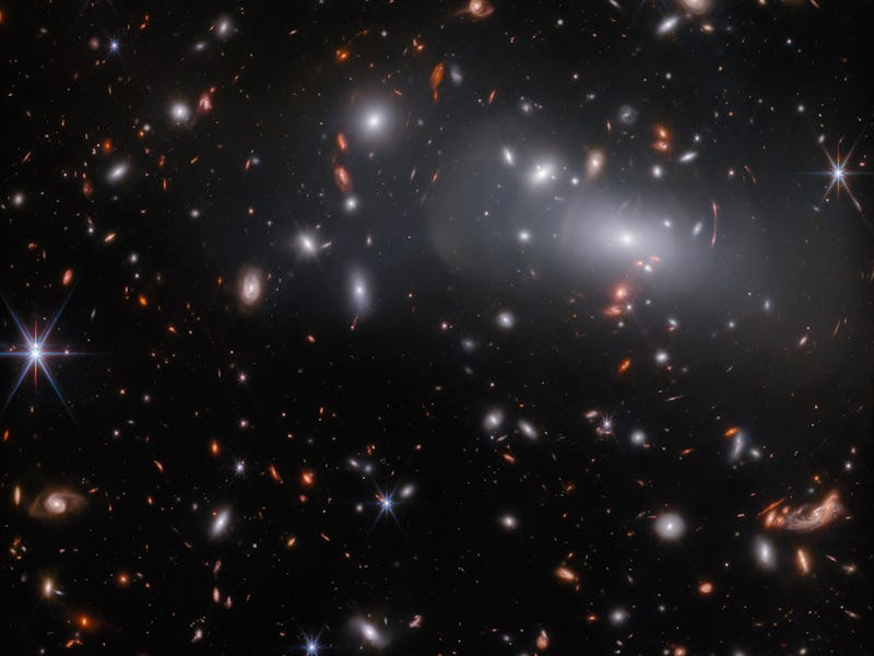 The galaxy you see repeated three times in this image is home to a cataclysmic stellar explosion called a supernova — or at least, it was when the light left the galaxy billions of years ago. When a massive star goes kaboom, its death throes flare bright enough to rival the light from all the 10s of billions of stars in the rest of the galaxy. It’s so bright that we can see it from our Earthly vantage point billions of light years away (with a little help from a powerful telescope like JWST and the physics of gravitational lensing).