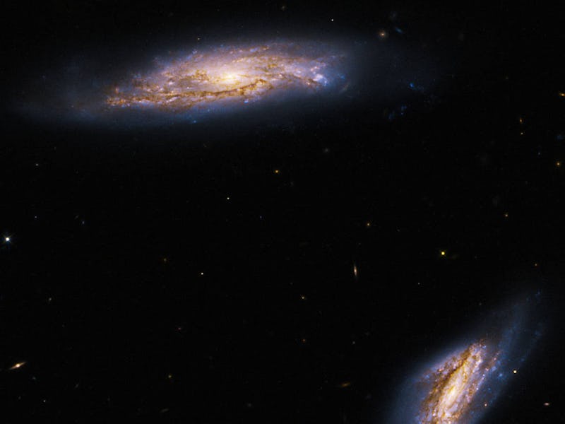 The Hubble Space Telescope captured this view of galaxies IC 563 (bottom right) and IC 564 (top left). They are also collectively called Arp 303.