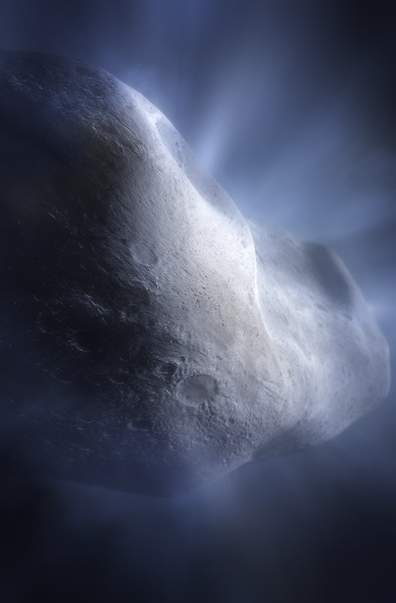 In this illustration of Comet Read, the icy object is sublimating. That’s when water, in the form of ice, vaporizes and forms a halo.