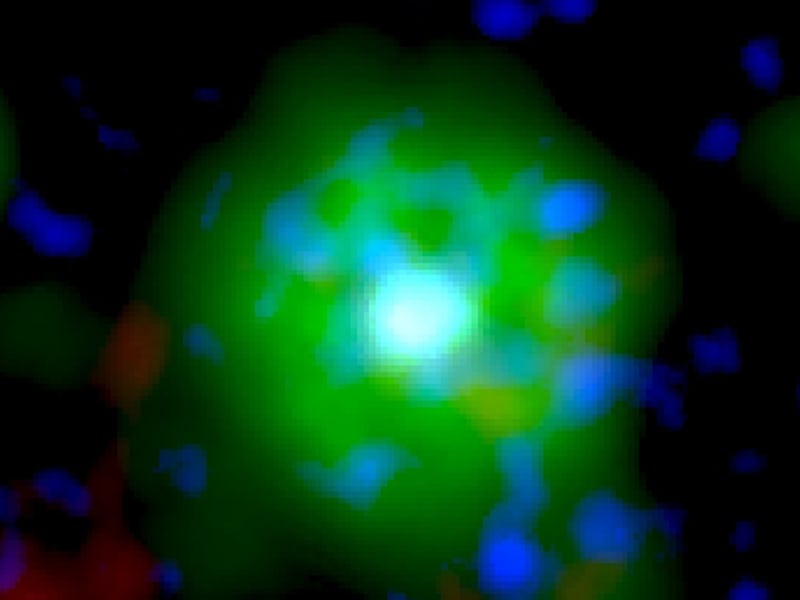 They found that the star was mostly made of neon, which is identified as glowing green in the new image, as well as magnesium, silicon and sulfur.