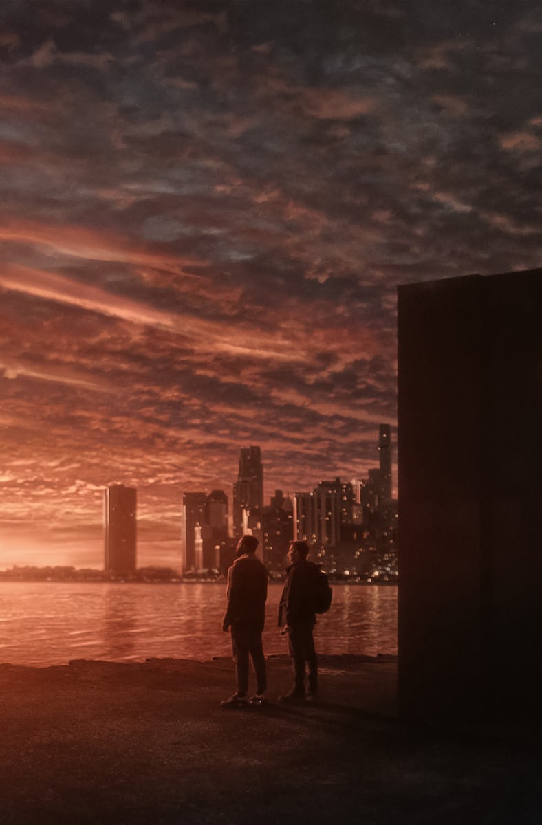Jason Dessen and Amanda Lucas stand in an alternate version of Chicago.