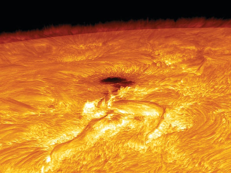 "There are places on the Sun where the magnetic field lines are open, which allows high speed winds to escape into the heliosphere," Steenburgh tells Inverse.