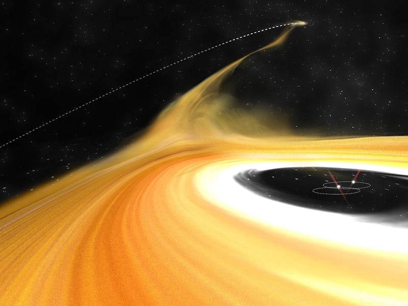 “The origin of the streamer has been a long-standing puzzle,” the authors point out in their paper. Previous hypotheses for the streamer say it could be the wall of a cavity carved out by molecular outflow, a spiral arm created by gravitational instability, or the remnant of a recently-captured low-mass cloudlet.
