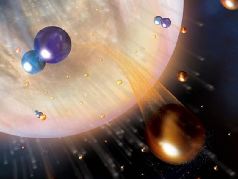 It starts with a positively charged molecule of hydrogen and carbon monoxide, which quickly bonds with the first electron it bumps into, but that reaction triggers a dramatic breakup. A carbon monoxide molecule goes one way, and a hydrogen atom goes the other, flying fast enough to break free of Venus’s gravity and vanish into space. And since two-thirds of water is made of hydrogen, losing hydrogen makes it hard for water molecules to form. (In fact, some of the hydrogen that gets lost this way may originally have been part of a water molecule that got broken apart by ultraviolet radiation from the Sun.)
