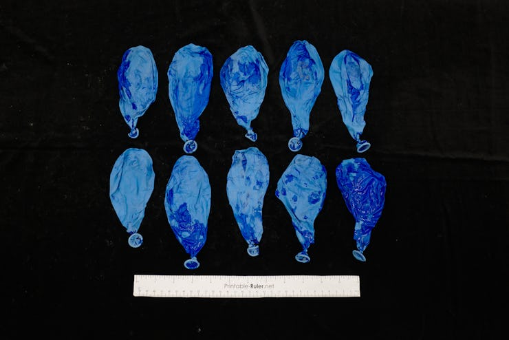 We allowed for aeration to simulate natural conditions, but otherwise, we left the balloons alone. Every two weeks, we randomly removed 40 balloons from each treatment. We photographed them to document degradation. Then we tested them.