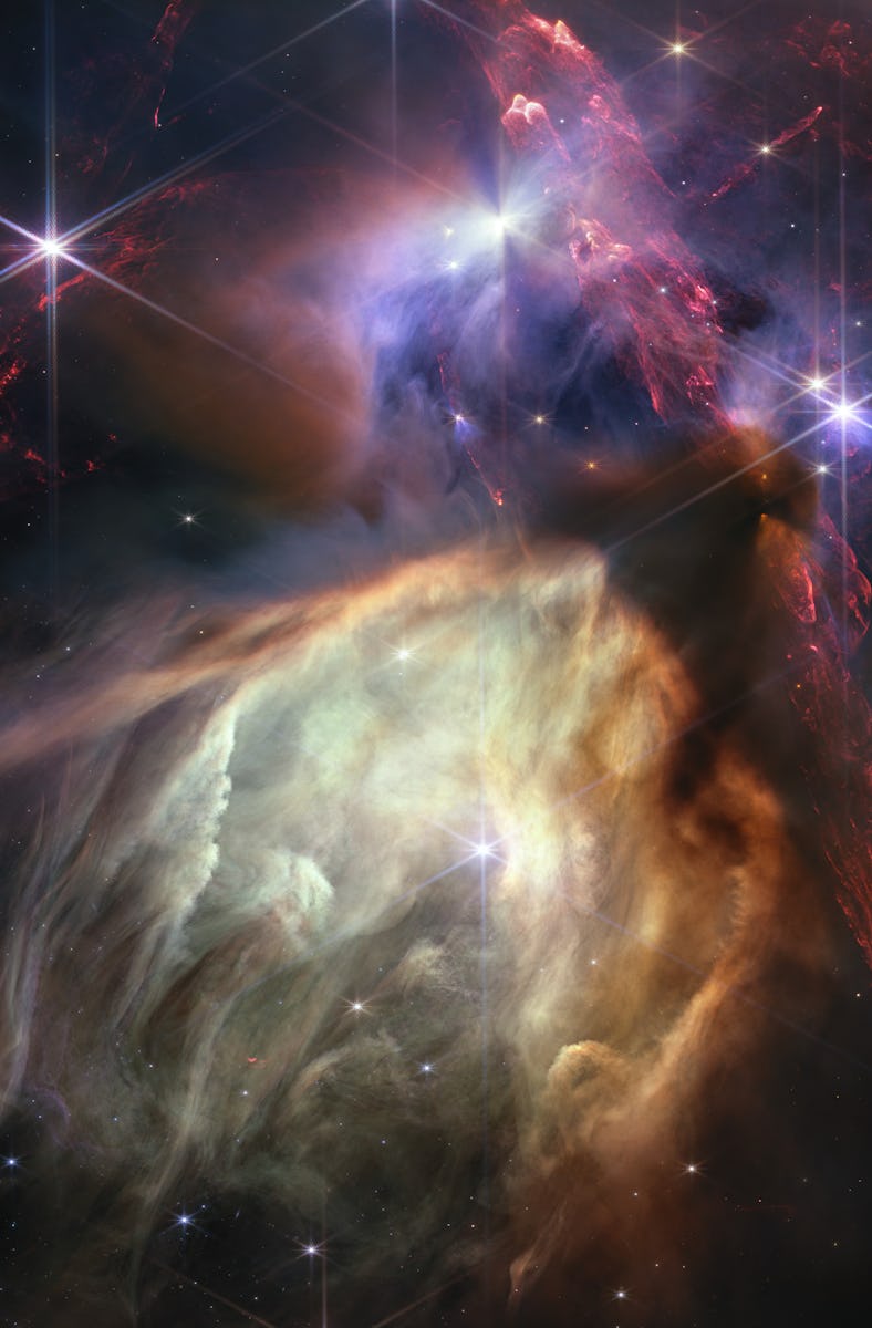 The Rho Ophiuchi cloud complex is the same kind of small stellar factory that once produced our Sun. In cosmic terms, it's quiet and out of the way, at least compared to the gargantuan nebulae where huge clusters of massive blue-white stars spawn. And it’s the closest star-forming region to Earth, just 390 light years away. JWST recently captured this detailed portrait of new stars blazing amid pillars of gas and dust.