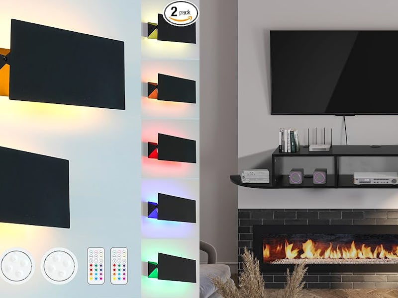The HEQIQEH modern RGB wall sconces come in a 2-pack with an adjustable cuboid design. These battery-operated lamps feature a remote control for easy color and brightness adjustments. Ideal for various indoor settings, they are easy to install and perfect for enhancing your room's atmosphere.4o mini