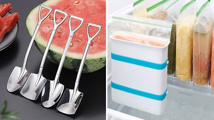 This freezer food block maker makes it so simple to store your leftovers and save space while doing it. It’s essentially a frame mold that’s super efficient for filling up storage bags and more. Just assemble the frame, add your bag, and fold the edges over to keep it standing upright as you fill it up. Toss the whole thing in the freezer, and once it solidifies, you can remove the mold and enjoy your compressed items in a stackable brick form.