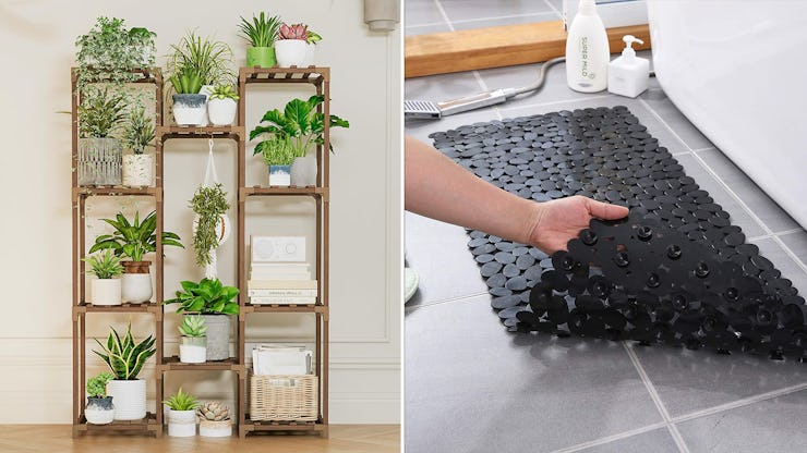This nonslip bath mat also adds a pop of modern style to your bathroom. The mat uses suction cups to attach to the tub, providing a stable place to stand while showering. The textured pebble design promotes water drainage, and it comes in several chic colors as well as multiple sizes. Plus, the mat is machine washable for quick cleaning.