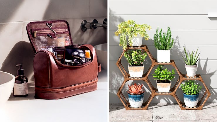 Made of rich-looking faux leather, this hanging toiletry bag has a wide top opening and breathable mesh pockets. The organizer and the waterproof shoe bag that it comes with are must-haves for your next trip. Choose from four shades and two sizes in the listing.