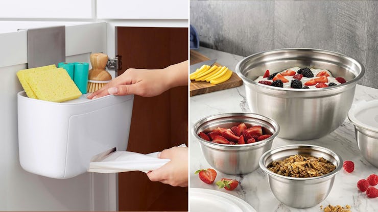 Replace your mismatched mixing bowls with this stainless steel set. The four bowls range in size (the largest holds five quarts) and each one boasts a stainless steel interior. Nonslip bottoms keep the bowls firmly in place as you mix up ingredients. Also included are airtight lids so everything stays fresh for longer.