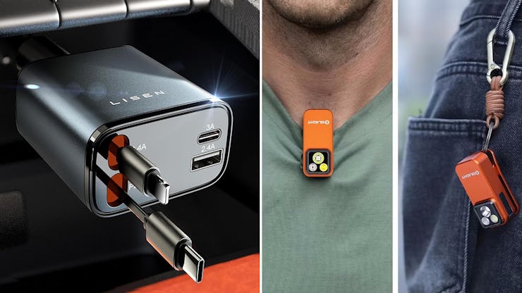 What makes this car charger absolutely brilliant is that the cables included — a lighting and USB-C cable — are retractable, meaning they can be pulled out and extend up to 31.5 inches or pull back into the base to prevent messy wires everywhere. It plugs into your car’s 12-volt outlet and can even reach people sitting in the back seat.