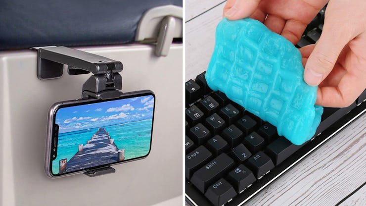 Stick this phone mount right on top of the raised tray table on a plane, on your suitcase handle in the airport, or use it to simply prop up your phone on your desk. Wherever you stick this adjustable holder when you’re traveling, it allows you to enjoy videos hands-free and is easy to fold up in your bag before you get off the plane.
